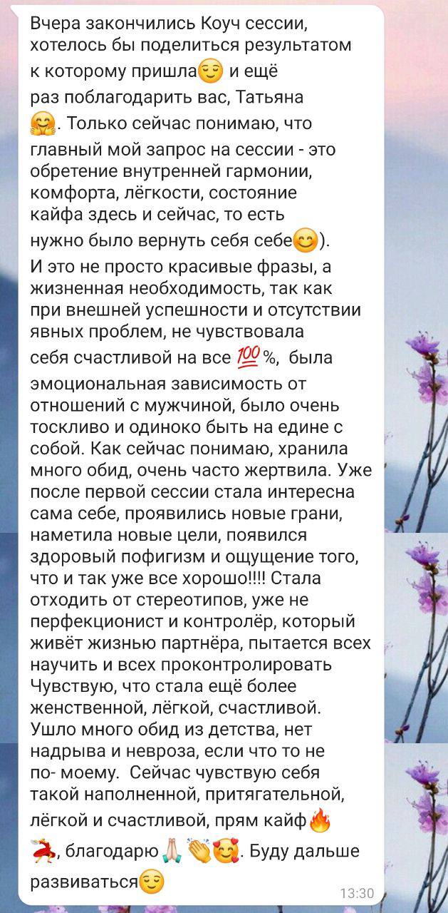 Уже после первой сессии стало легче. Она поняла, что ей действительно необходима сепарация от матери и что границы — это не катастрофа и не предательство. Стало видно, что делать по-своему не смертельно. Более того, именно это и даёт опору.